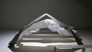 Una primera maqueta resulta de cortar y plegar al azar 11 tiras de cartulina A-4 blanca y a un color. El juego de formas que se produce es insospechado.