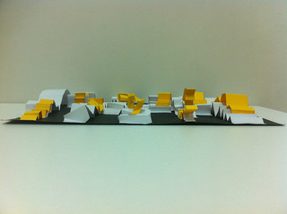 La segunda maqueta se centra en dos materiales, uno opaco y otro translúcido vs hormigón-vidrio. Se crea armonía generando un ritmo continuo de repetición de formas.